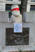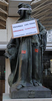 Trois dimanches de suite, à l’occasion de la sortie du dernier rapport du GIEC et dans le cadre d’une action internationale de Scientist Rebellion, nous avons bandé les yeux de statues, et accroché à leurs cous des panneaux indiquant « Ne mentez plus », « Ouvrez les yeux » ou « Ceci est une urgence climatique », à Nice, Toulouse, Paris, Montpellier et Blois. Plus d’une centaine de statues ont été affectées dans le monde, dans une quarantaine de villes réparties sur une douzaine de pays, pour exiger que les personnes au pouvoir ne détournent pas le regard des résultats de la science, alors que le dernier rapport du GIEC montre clairement que la crise climatique et le désastre écologique menacent notre existence même, et exigent des mesures immédiates qui vont bien au-delà de ce qui est fait actuellement.