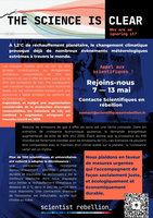Le 10 mai 2023, des dizaines de scientifiques ont participé à des actions dans dix villes de France visant à alerter sur la nécessité de ne plus ouvrir et financer de nouveaux sites et infrastructures liées à l’extraction de pétrole et de gaz. Cette journée, à l’initiative de Scientifiques en rébellion dans le cadre de la campagne internationale de Scientist Rebellion The Science is Clear, a réuni également Extinction Rebellion, ANV-COP21, Dernière Rénovation et STOP EACOP.