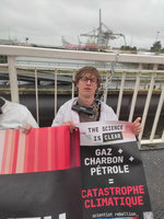 Le 12 mai 2023, les scientifiques en rébellion, en coalition avec d’autres mouvements (ANV-COP21, Extinction Rebellion, Stop Eacop et Dernière Rénovation) ont ciblé TotalEnergies et son projet d’installation d’un terminal méthanier flottant au Havre, dans le cadre de la campagne internationale de Scientist Rebellion The Science is Clear.