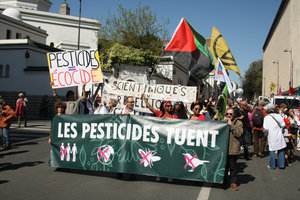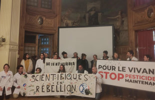 L’action était co-organisée par Extinction Rebellion, Scientifiques en rébellion, Agir pour l’Environnement, Alerte des Médecins contre les Pesticides, le Collectif des Ouvriers Agricoles et de leurs Ayants Droit Empoisonnés par les Pesticides, #NousToutes, Peuples Solidaires ActionAid, Secrets toxiques, et SUD Recherche. Près de 80 autres organisations nationales ou locales se sont jointes à l’appel.