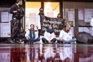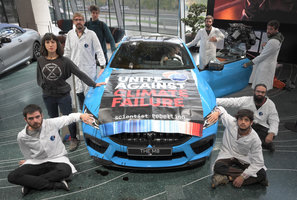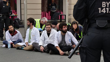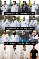 La semaine suivante, les scientifiques européens ont convergé vers Munich. Ils et elles se sont englué·es dans les locaux de la banque d’investissement Black Rock, ont bloqué un axe routier majeur, et se sont englués à des automobiles de luxe dans un showroom BMW le 29 octobre. Pour cette dernière action, 16 membres de Scientist Rebellion ont été placés en détention provisoire jusqu’au 4 novembre. Parmi les scientifiques mis en prison, se trouvaient les Francais Sylvain Kuppel, spécialiste toulousain des ressources hydriques, Jérôme Guilet, astrophysicien à Saclay et Hugo Raguet, chercheur en informatique à Blois, et Marceau Minot, docteur en écologie de l’université de Rouen. Manua, coordinateur de Scientist Rebellion pour la France, faisait également partie des personnes incarcérées.