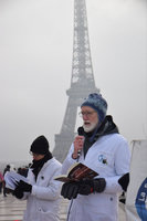 Dès 6h, et jusqu’à 14h en continu, une cinquantaine de scientifiques se sont relayé·es pour faire entendre des textes importants, des textes qui rappellent les faits et convoquent les émotions. En blouses blanches, elles et ils ont défilé en cercle en portant une bombe symbolisant les méga projets d’énergies fossiles (« bombes carbone »). Chaque quart d’heure, au son d’un gong, elles et ils ont scandé les dates des 30 COP et la progression inexorable des émissions de gaz à effet de serre.