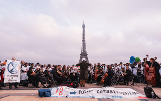 Le 22 novembre 2025, Scientifiques en rébellion et l’Orchestre du nouveau monde ont mené une action de résistance contre les désastres climatique, écologique et social pendant 10h pour marquer les 10 ans de l’Accord de Paris (COP21) et la fin de la COP30.
