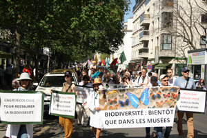 À deux jours de la Journée internationale de la santé, et alors que le Parlement s’apprêtait à adopter un texte visant à réintroduire des pesticides hautement toxiques, notamment les néo-nicotinoïdes, près de 2000 personnes ont marché pour demander l’interdiction des pesticides, le samedi 5 avril à Paris, au départ du Muséum National d’Histoire Naturelle, en direction du ministère de la Santé. Plusieurs prises de parole ont dénoncé les ravages des pesticides sur l’effondrement de la biodiversité, et leurs impacts croissants et avérés sur l’explosion des pathologies humaines.
